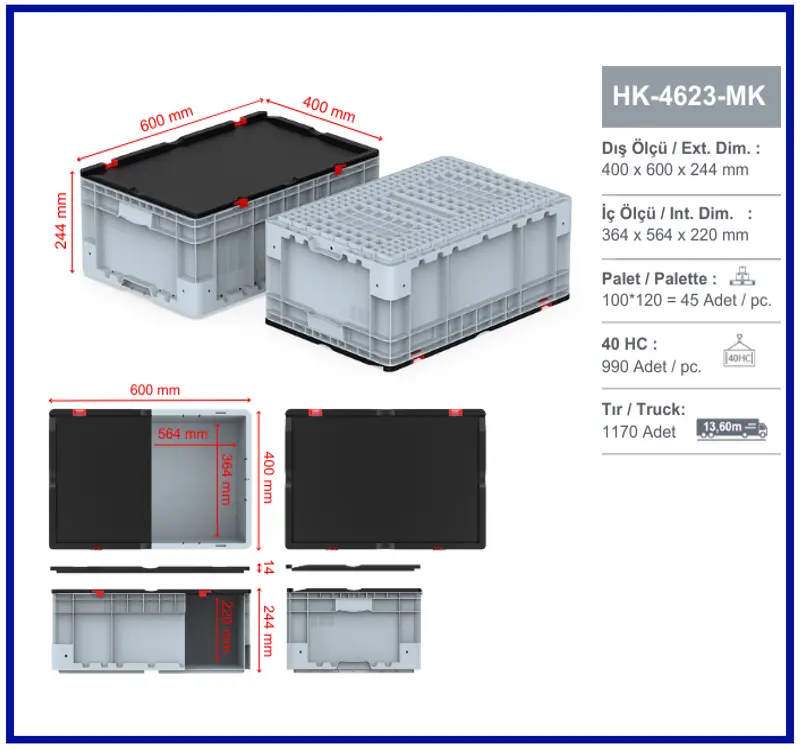 400x600 mm ölçülerindeki bu plastik kasa, depolama, taşıma ve lojistik ihtiyaçlarınız için ideal bir çözümdür. Sağlam yapısı sayesinde ağır yükleri rahatlıkla taşır ve uzun ömürlü kullanım sunar. Yüksek kaliteli gıda ve sanayi standartlarına uygun plastik malzemeden üretilmiştir, bu sayede hem hijyenik hem de dayanıklıdır.
