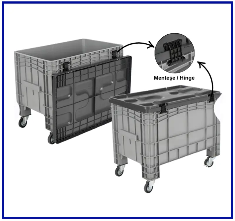Topuklu Menteşe Kapaklı Plastik Kasa – 634 x 1017 x 850 mm