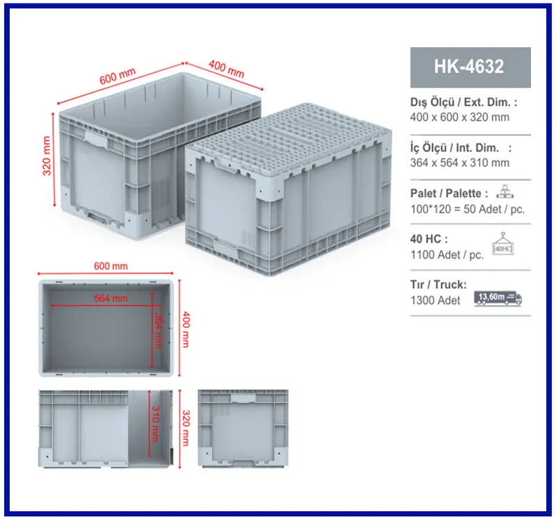 | 400 x 600 x 320 ( h ) mm - Plastik Sanayi Kasası | |||