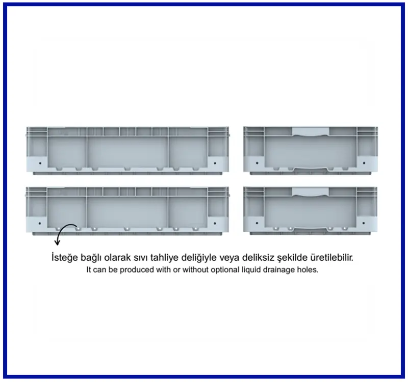 İsteğe bağlı dört yönünde yan alt yüzeylerinde sıvı tahliye delikleri açık üretilebilir.