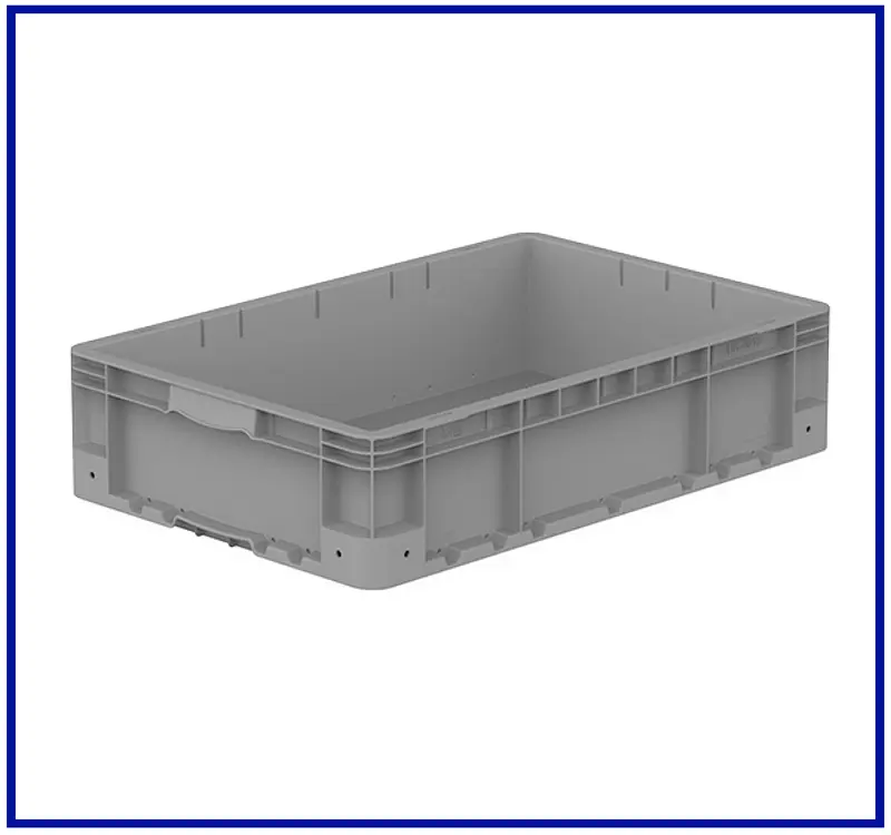 400x600 mm kasa, yanları ve altı kapalıdır. Güçlendirilmiş tabanlıdır. El korumalı tutma yeri mevcuttur ve üst üste istiflenebilir. Material: % 100 Orijinal PPC Lacivert ve Geri dönüşüm PP Gri , Mavi renklerde standart olarak üretilmektedir.