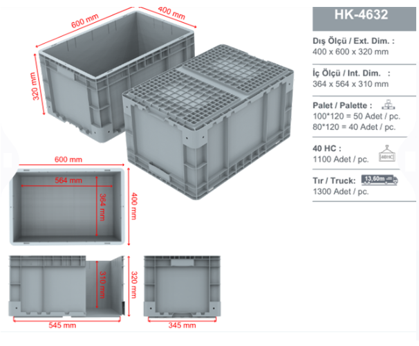 | 400 x 600 x 320 ( h ) mm - Plastik Sanayi Kasası | |||