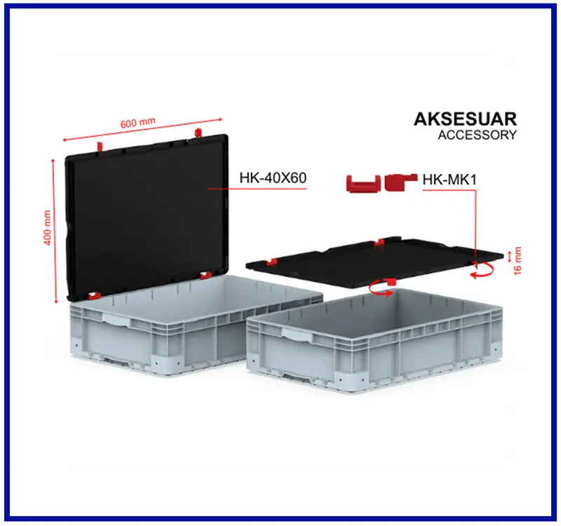 HK-40X60 kapak ve HK-MK1 kilit seti takılarak, Kilitli kapaklı olarak kullanılabilir.